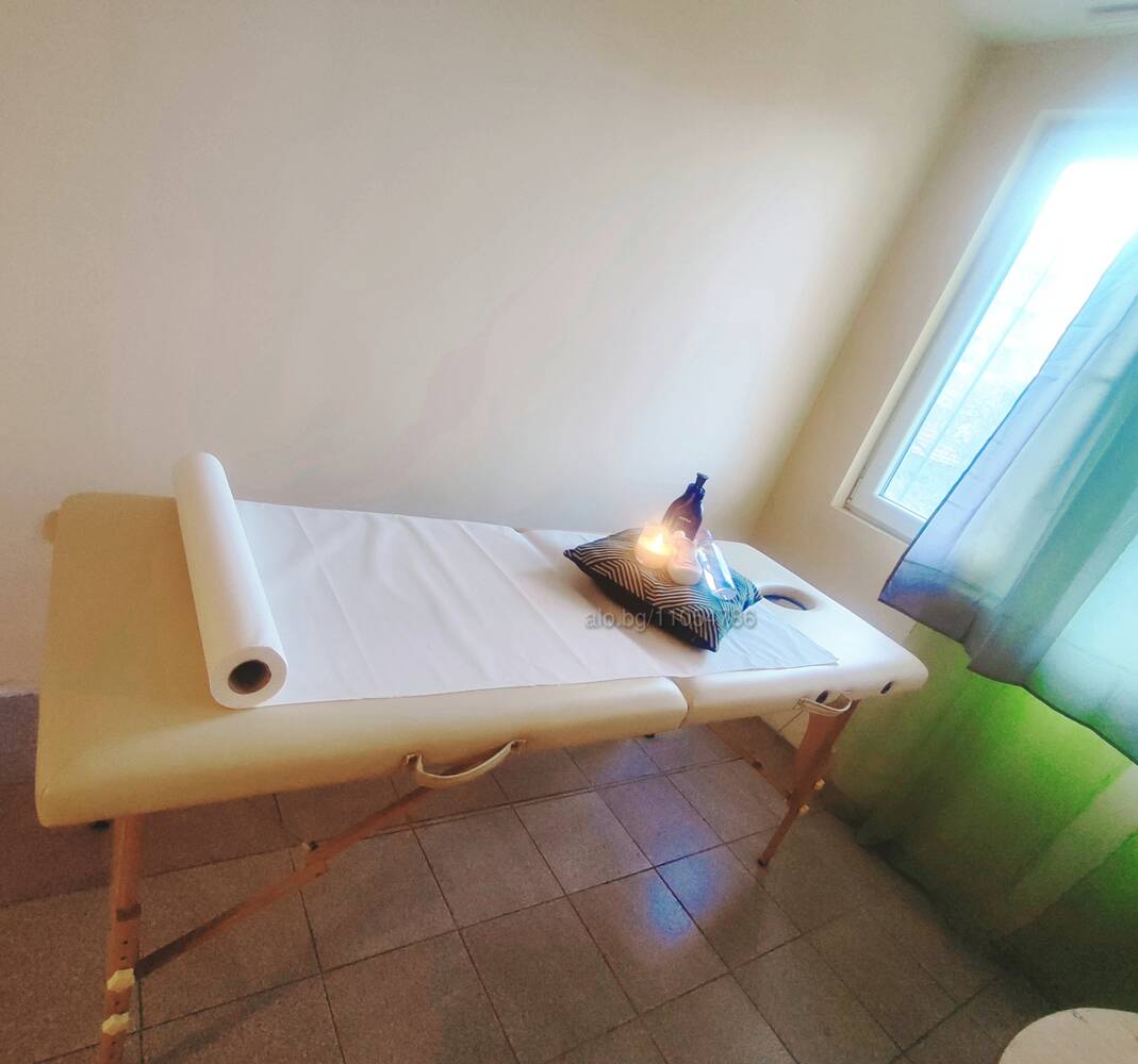 Комбинация между кушетка и матрак. Гола съм по време на масажа.